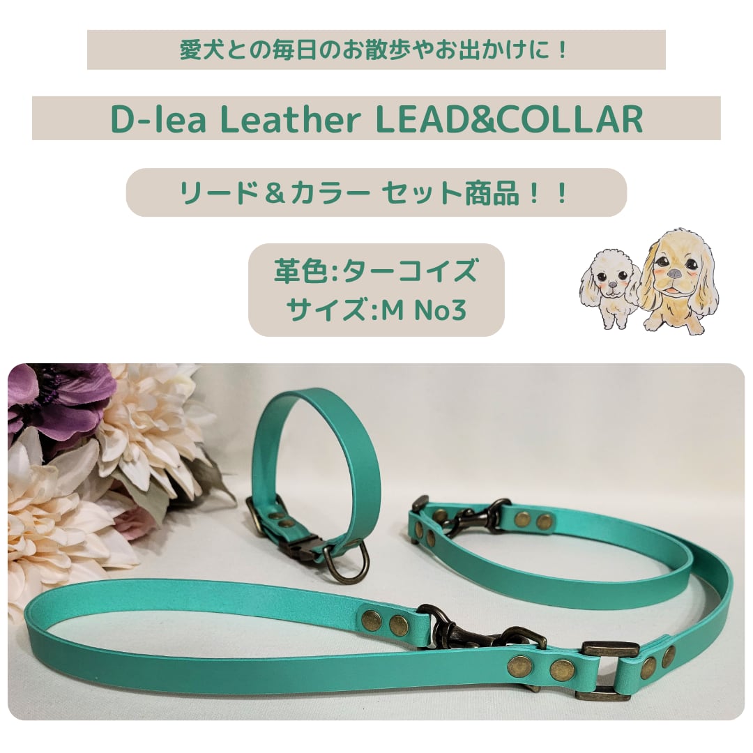 D-lea Leather LEAD&COLLAR セット商品!『一枚革』【TターコイズM-No3-1】