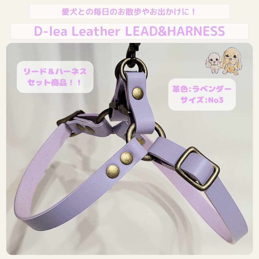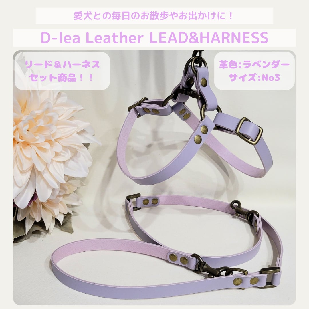 D-lea Leather LEAD&HARNESS セット商品!『一枚革』【TラベンダーM-No3-1】