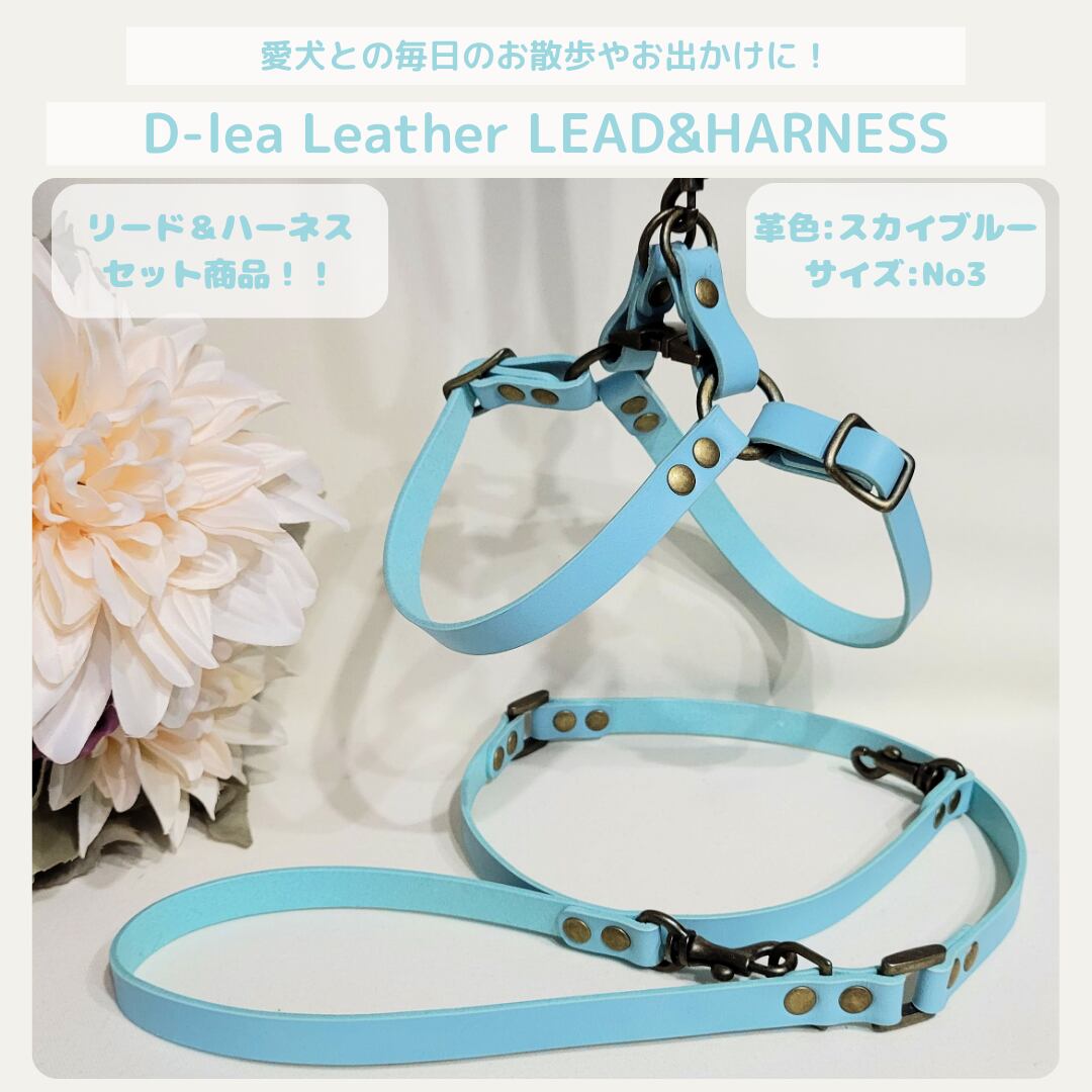 D-lea Leather LEAD&HARNESS セット商品!『一枚革』【TスカイブルーM-No3-1】