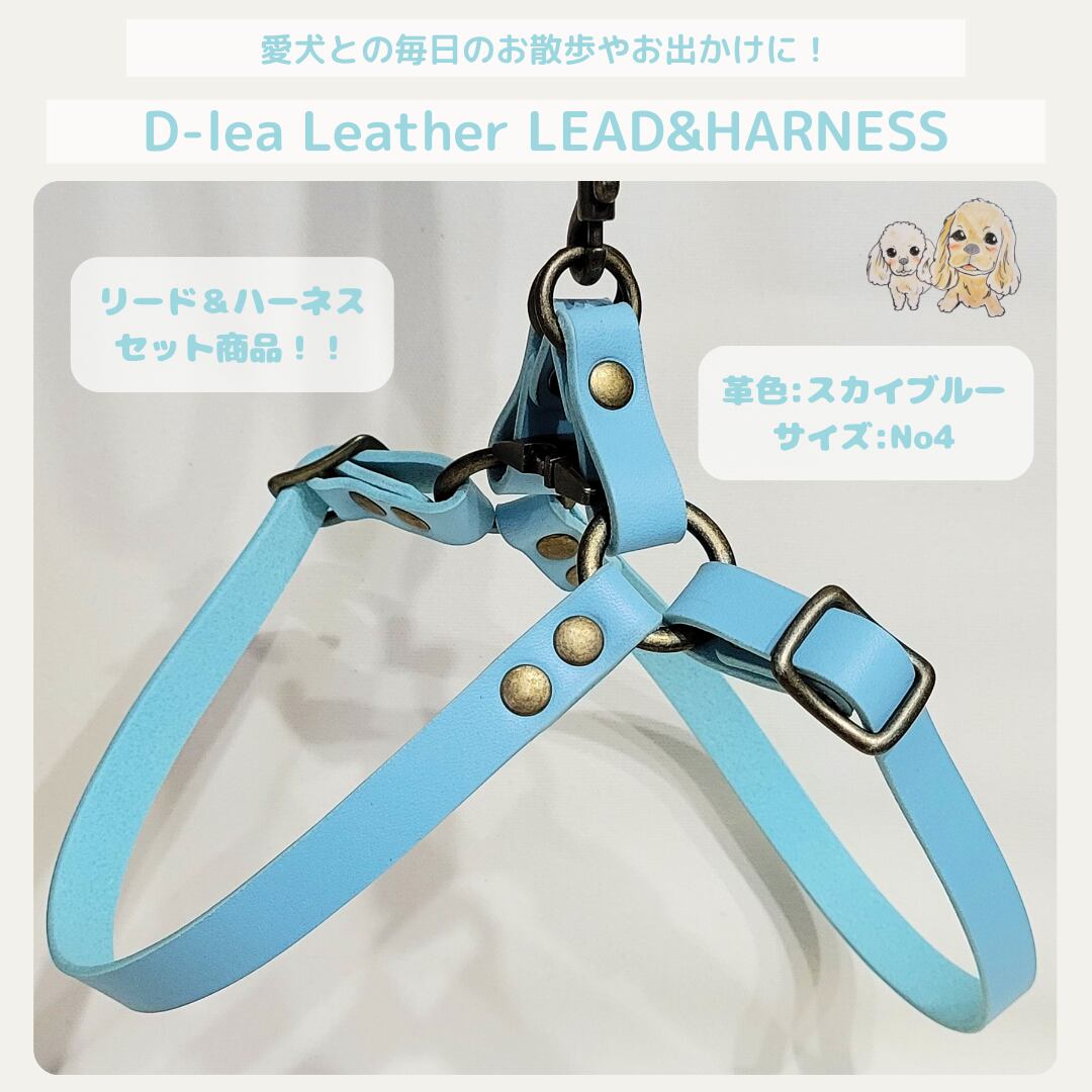 D-lea Leather LEAD&HARNESS セット商品!『一枚革』【TスカイブルーM-No4-1】